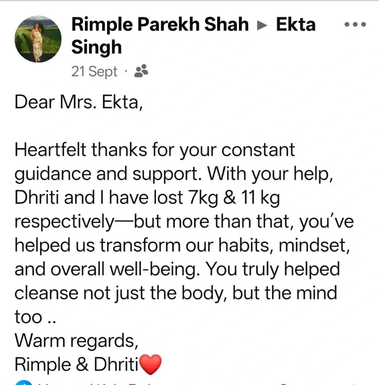 Guided personally by Ekta Singh, who lost 20kg and reversed diabetes through this very method.